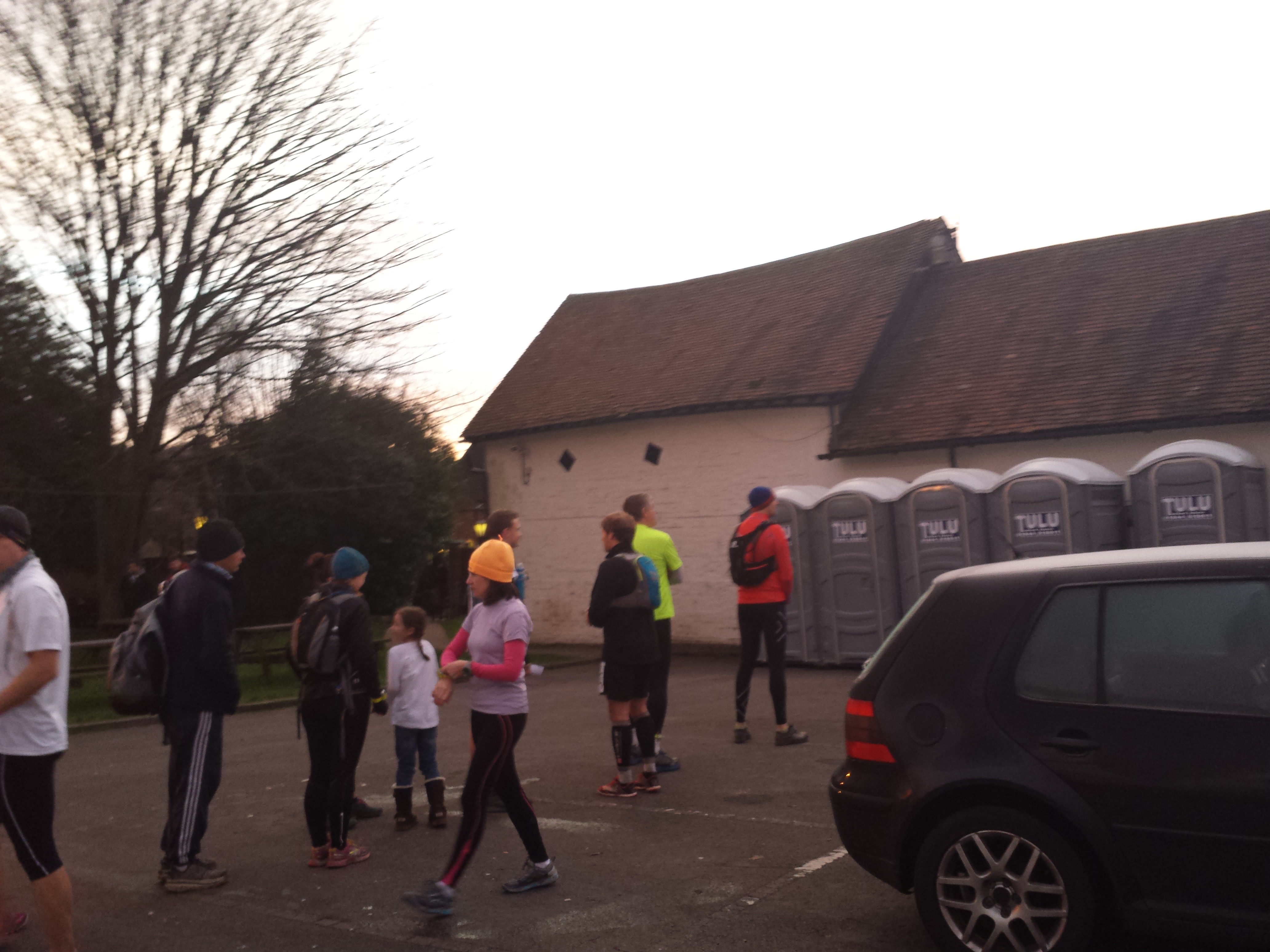 There was a bit of a queue for the gents, which wasn’t particularly unexpected, until a nice man popped his head round the door and said to the queue that there were some toilets outside that were available. I went out to them, and it rapidly became clear why they were free…peeling my frostbitten bum off the seat of an outside portaloo in sub-zero temperatures was an experience I’ll not be repeating any time soon. However, I got back inside the pub and sorted out my kit.