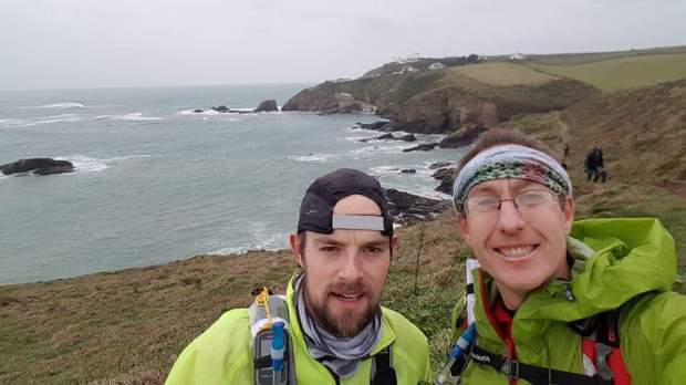 The first race checkpoint was at Porthleven, 24.5 miles in. A relatively short distance, but hard work over this terrain. It was great to have Mark and Sharon there with the first hot food of the race, as up to then it had been cold food. Hot beans hit the spot (although only a few mouthfuls) and John, who normally struggles to eat in the first 30 miles also managed to put something away. I think we were both in good spirits, although both very conscious of how tough that 25 miles had been and how tired we were already.
