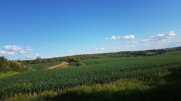It was not long before the town was left behind and I came to my first rapeseed field. This was (if you don’t know) a large field, filled with shoulder-high blossoming rapeseed, absolutely saturated with water from rainfall the previous night. The GPS track clearly showed the route going straight through the middle, and there was no obvious clear route I could see…so I took a quick look around the edge hoping for a cleared track, and when it was obvious it did not exist, I simply pushed my way through. It was suddenly clear why the returning runners from last year were wearing long trousers, as my legs were being scratched to pieces, meanwhile everything I had on was being soaked. The field probably only took 10 minutes or so to push through (and was one of 4 or 5 that day) but it was quite an experience! As I came to more of the fields, it became clear the trick was to follow a slightly clearer route that one of the tractor tyres had taken, so the rapeseed was slightly less thick, but it was still very challenging.