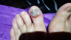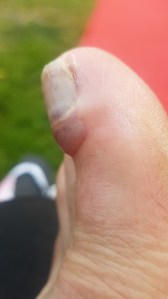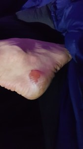 I attended the minor injuries unit the morning after I got home to get my feet sorted. The doctor displayed a professional interest in the mess my feet were as he discussed with the nurse the best way to treat them. I went to have various parts of them re-dressed (mainly my right foot toes) another 5 times. I lost two toenails, and another one that is looking wobbly. My feet still hurt when I walk on a hard floor, in my socks, as if all the ‘meat’ on the soles that normally provides padding has gone, and I’m just walking on the nubs of bones. I will not make you suffer through horrible foot pics here…but if you are interested, you can see a few HERE.