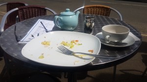 I reached a park at about 10.30, with a big pond and green spaces, and asked someone if there was a café nearby by. It was a wonderful feeling to order some proper food (a healthy pasta and tuna thing) and sit at a table outside, with my shoes off (much to the amazement of everyone else!) and actually enjoy the feeling of eating.