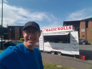 I slept reasonably well, and was down first to abuse the all-you-can-eat breakfast. I even got away with 6 sausages in a napkin to put in one of my drop-bags for a later stage. Magic!