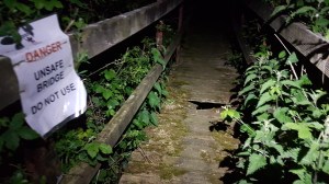 I stopped to take a picture of the oldest most-broken wooden bridge I have ever seen, which I then had to go over. So I suppose I must have still had a sense of humour at that point…