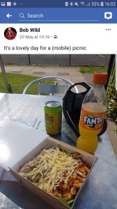 Within an hour, I made the decision to leave the route at what looked like a busy bridge over the canal I was on, and was overjoyed to see a small parade of shops nearby. I sat outside Pizza Supreme delicately eating about 20 chips, but more importantly drinking can after can of fizzy sugary drink. Magic. Each can had about 10 grammes of sugar, so 3 cans certainly gave me a boost.
