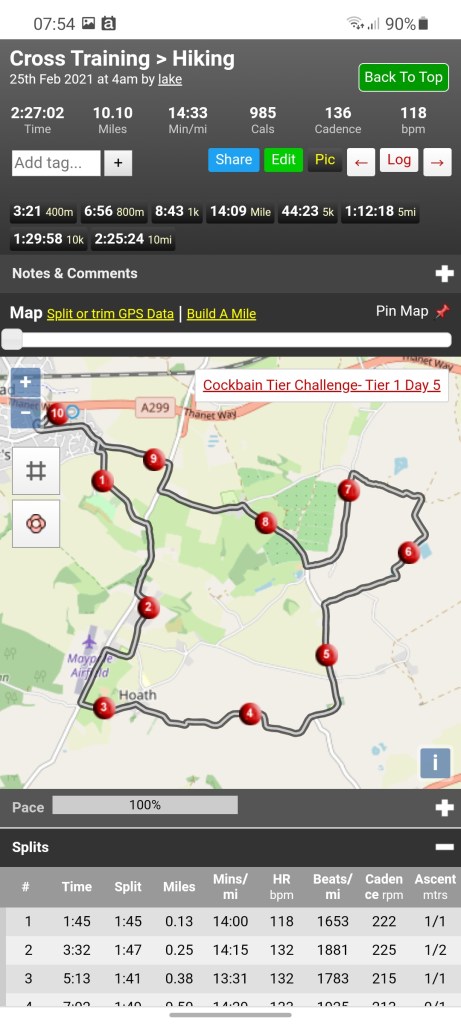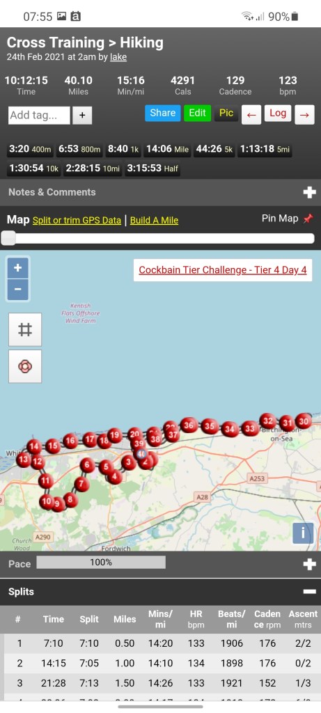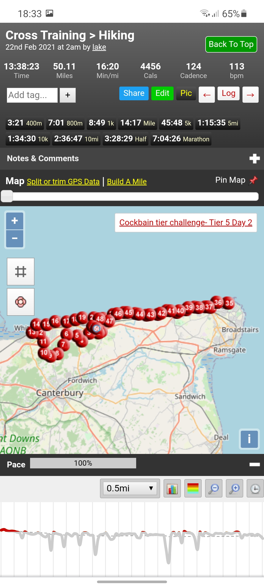On the back of this I entered a local looped 50 miler (the Kent 50 mile Challenge), with the plan of walking (fast) every step, and I managed it in about 11 hours.
